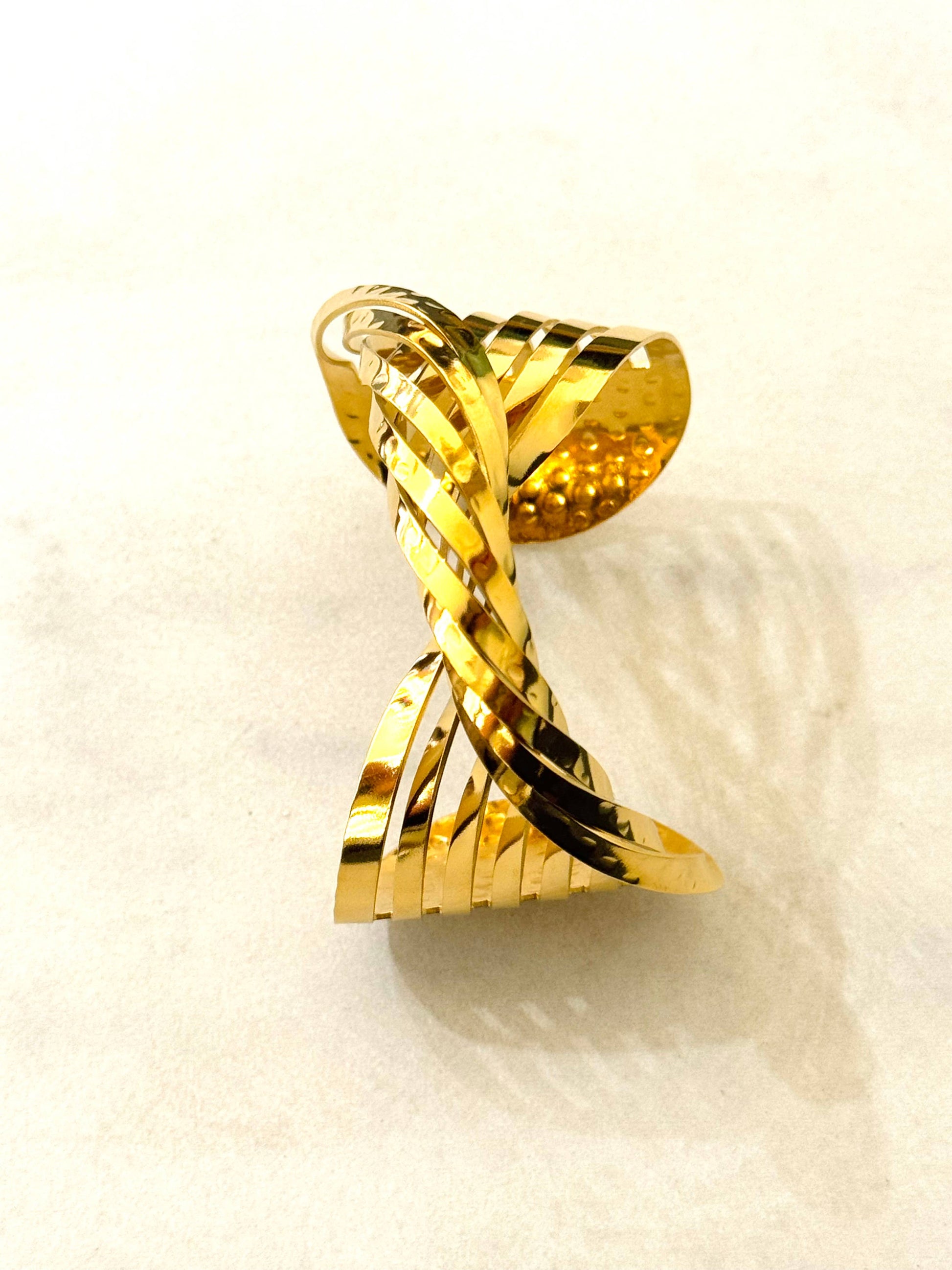 The Cleo Stainless Steel Bangle Bracelet demands attention with its bold 14k gold-plated design and adjustable sizing for a confident, perfect fit. Waterproof and free from nickel and lead, this hypoallergenic bangle empowers you to wear your fearless style every day.