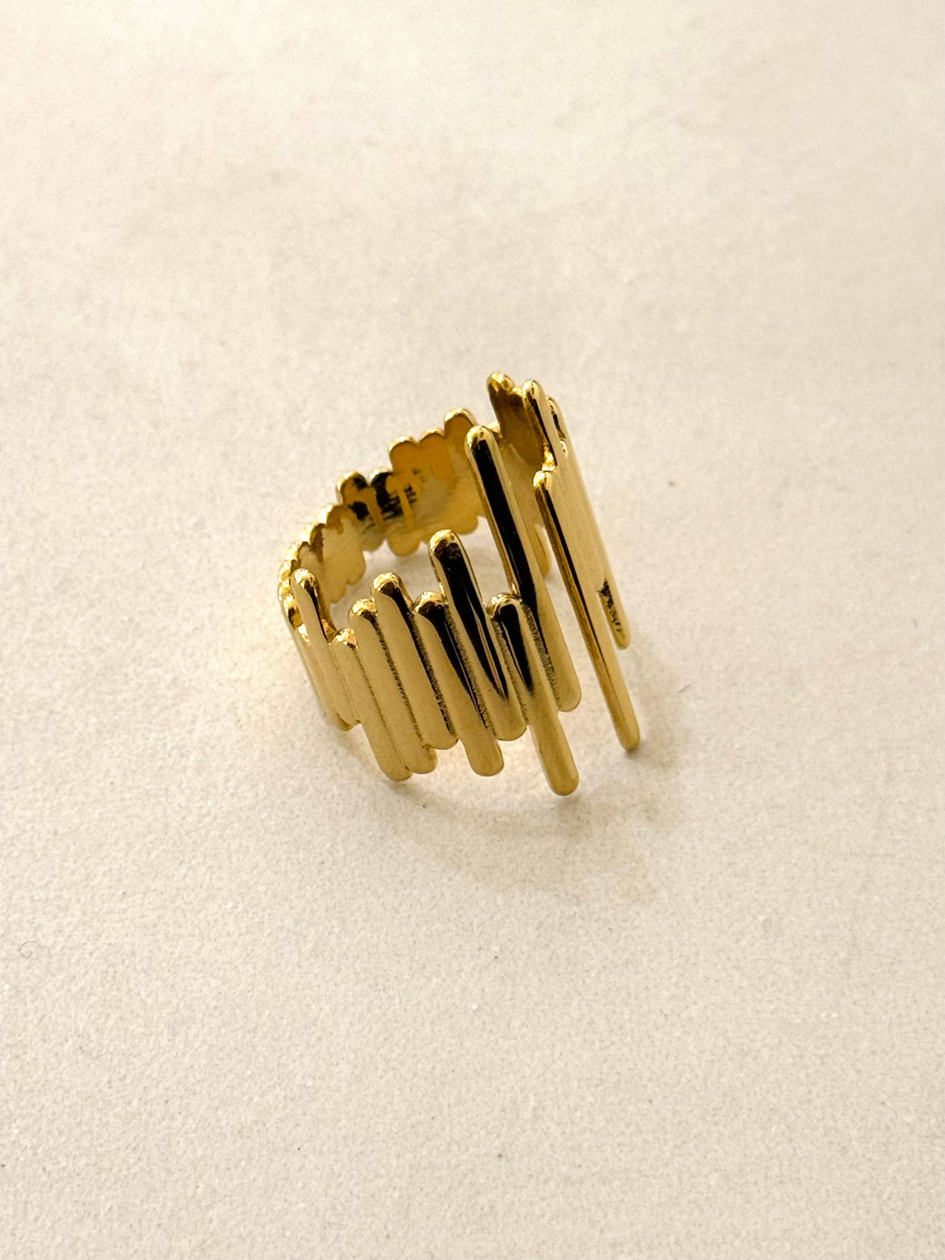 Elevate your accessory collection with the Equalizer Adjustable Stainless Steel Gold Ring, exquisitely crafted from durable 14k gold-plated stainless steel. Designed for both elegance and practicality, this ring features an adjustable band that ensures a perfect fit for any finger size. Its waterproof and hypoallergenic properties, free from nickel and lead, provide lasting comfort and safety for everyday wear. With its sleek design and refined finish, the Equalizer Ring effortlessly enhances any outfit, making it a versatile and timeless addition to your jewelry ensemble.