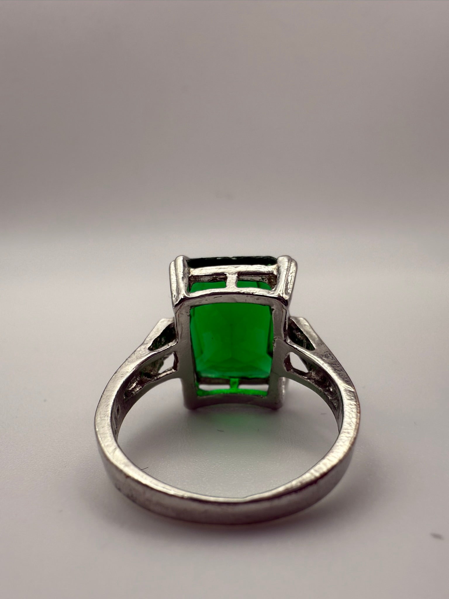 Vintage Emerald Glow Rectangular Statement Ring 8.5