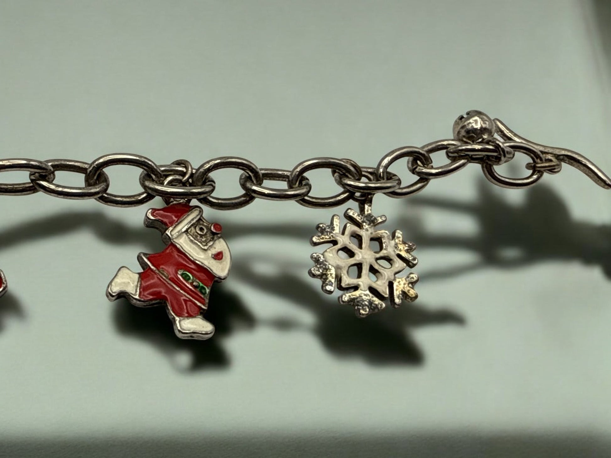 This festive charm bracelet features a classic silver-tone chain adorned with playful holiday-inspired charms, including Santa, a snowflake, winter boots, and seasonal accents in red, green, and white enamel. Each charm adds a touch of nostalgic cheer, creating a joyful, collected-over-time feel. Finished with a secure toggle clasp, this bracelet is perfect for celebrating the season, adding a whimsical touch to winter outfits, or gifting to someone who loves timeless holiday charm.