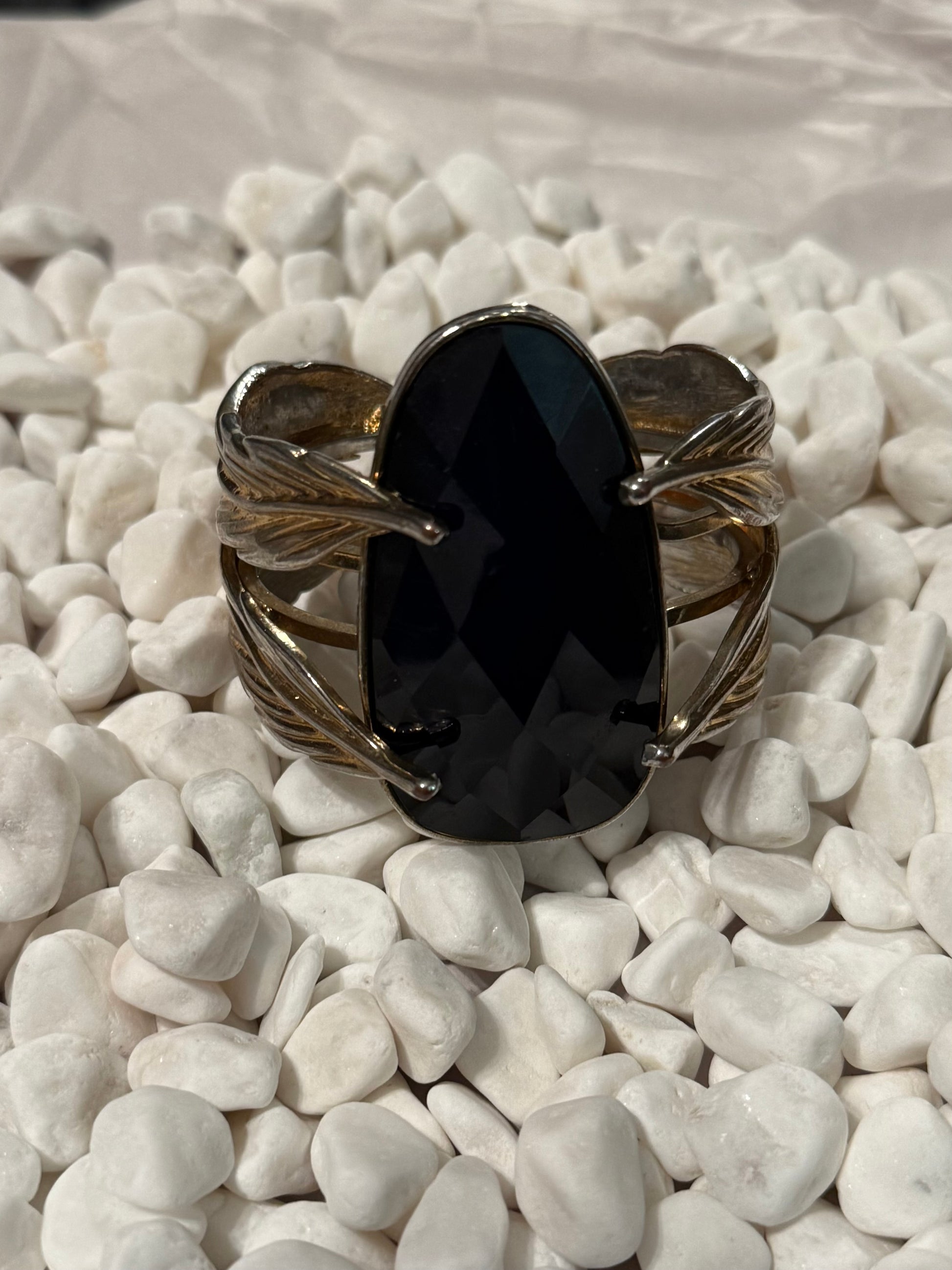 Make a bold statement with this vintage hinged bangle bracelet that’s both huge and stunning. Featuring a mix of silver and gold tones, it showcases a dazzling glass stone that shifts from black to a mysterious blue depending on the light. Perfect for adding a playful touch to any outfit, this eye-catching piece combines retro charm with modern flair, making it a must-have treasure for those who love one-of-a-kind accessories. Slip it on and let your wrist do the talking!