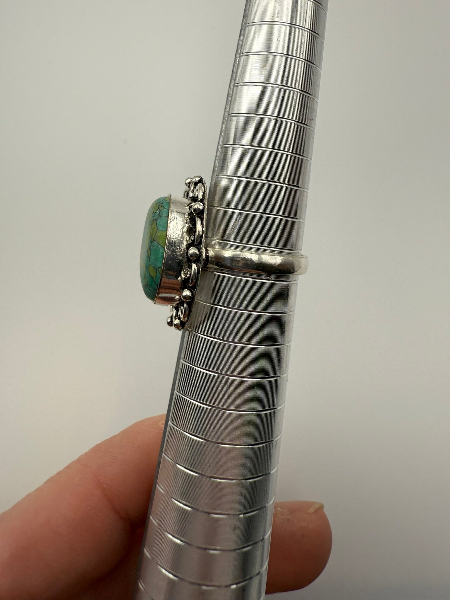 Vintage Mosaic Meadow Turquoise Ring 7.5