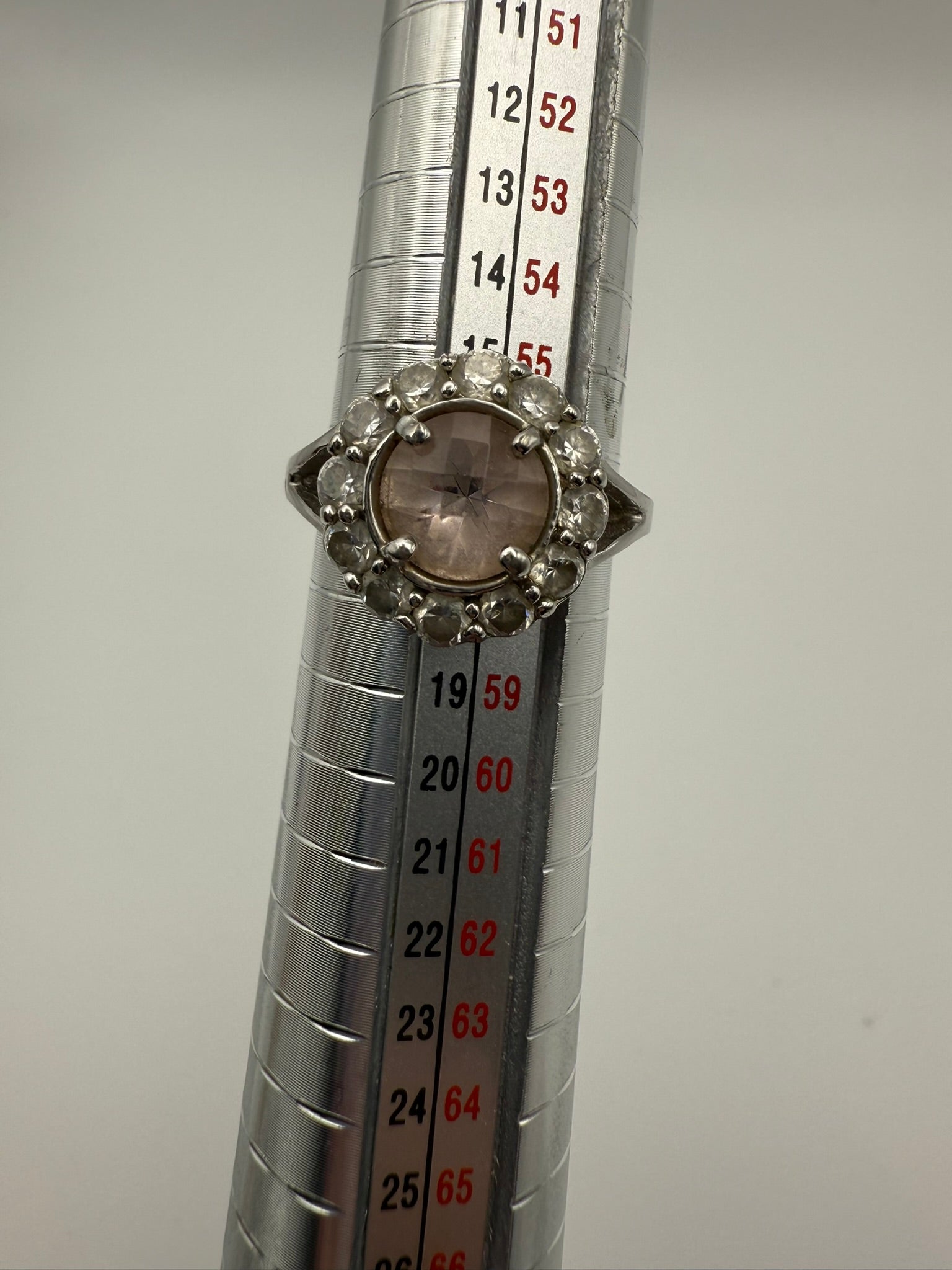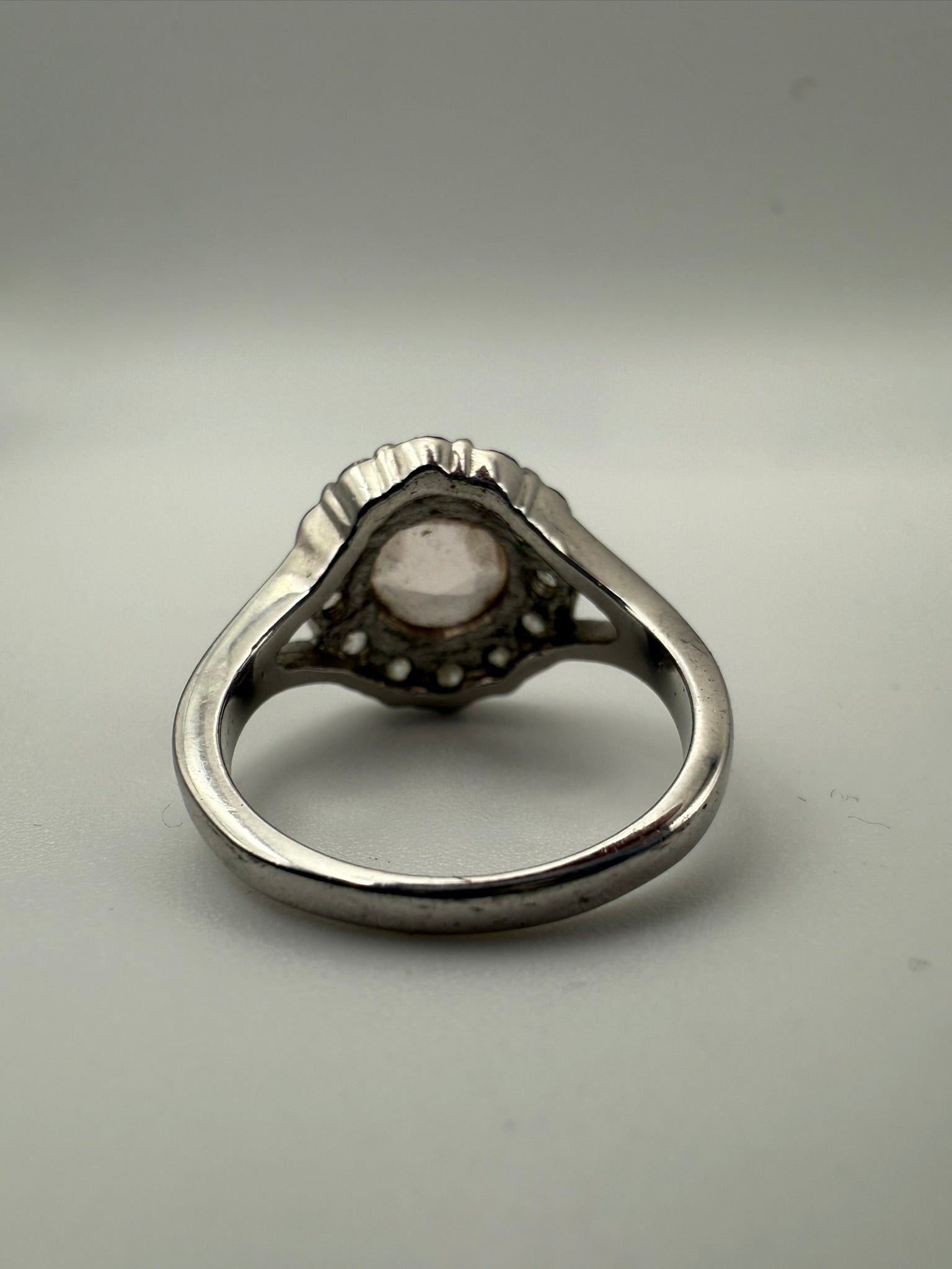 Vintage Pinky Peach Soft Halo Sterling Ring 8