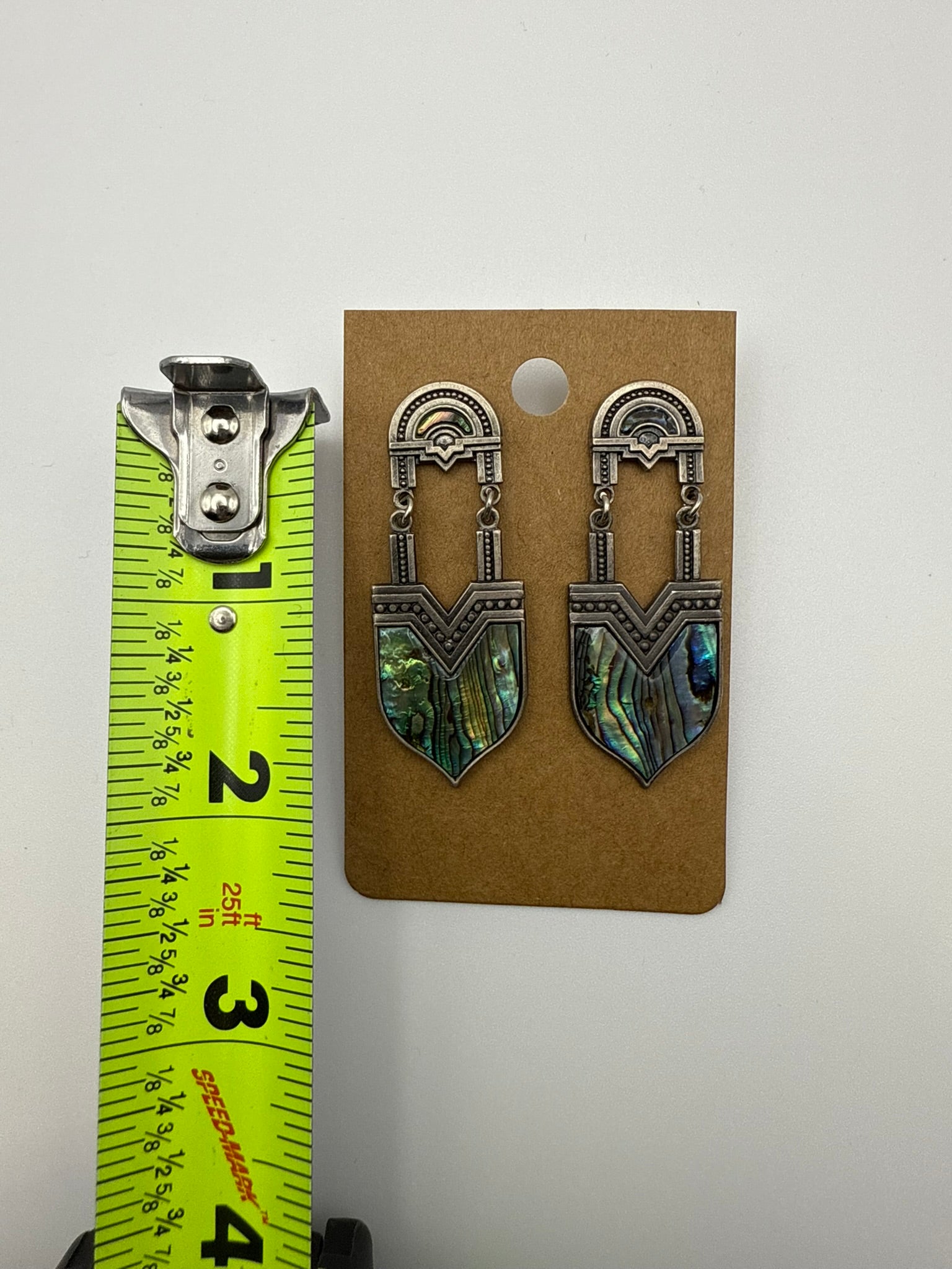 Vintage Richard Nuri Signed Abalone Shield Earrings