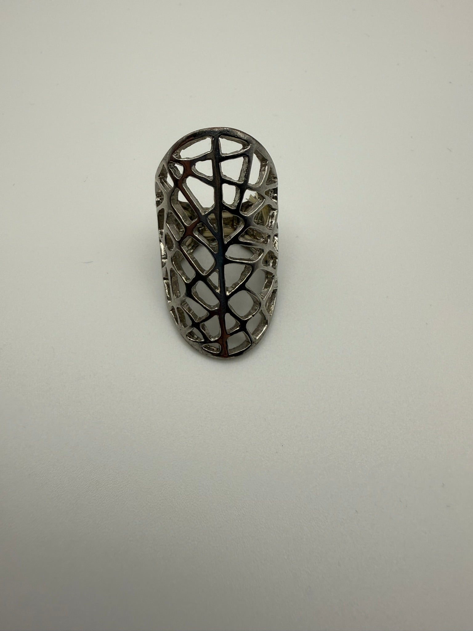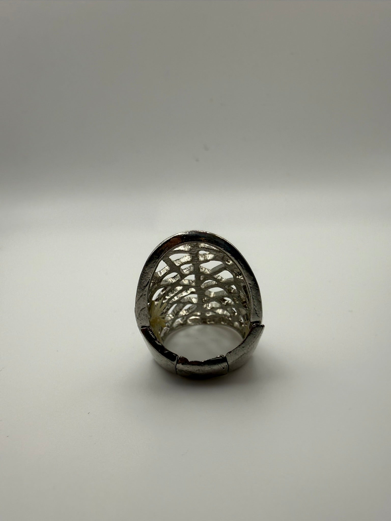 Vintage Silver Web Oval Statement Ring 7-7.5 ADJ