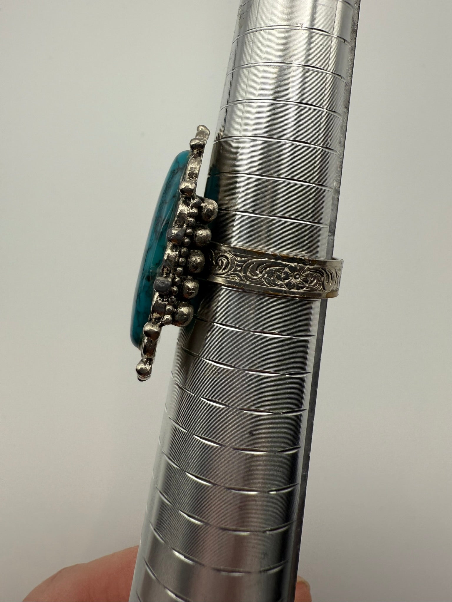 Vintage Turquoise Filigree Statement Ring 9 ADJ