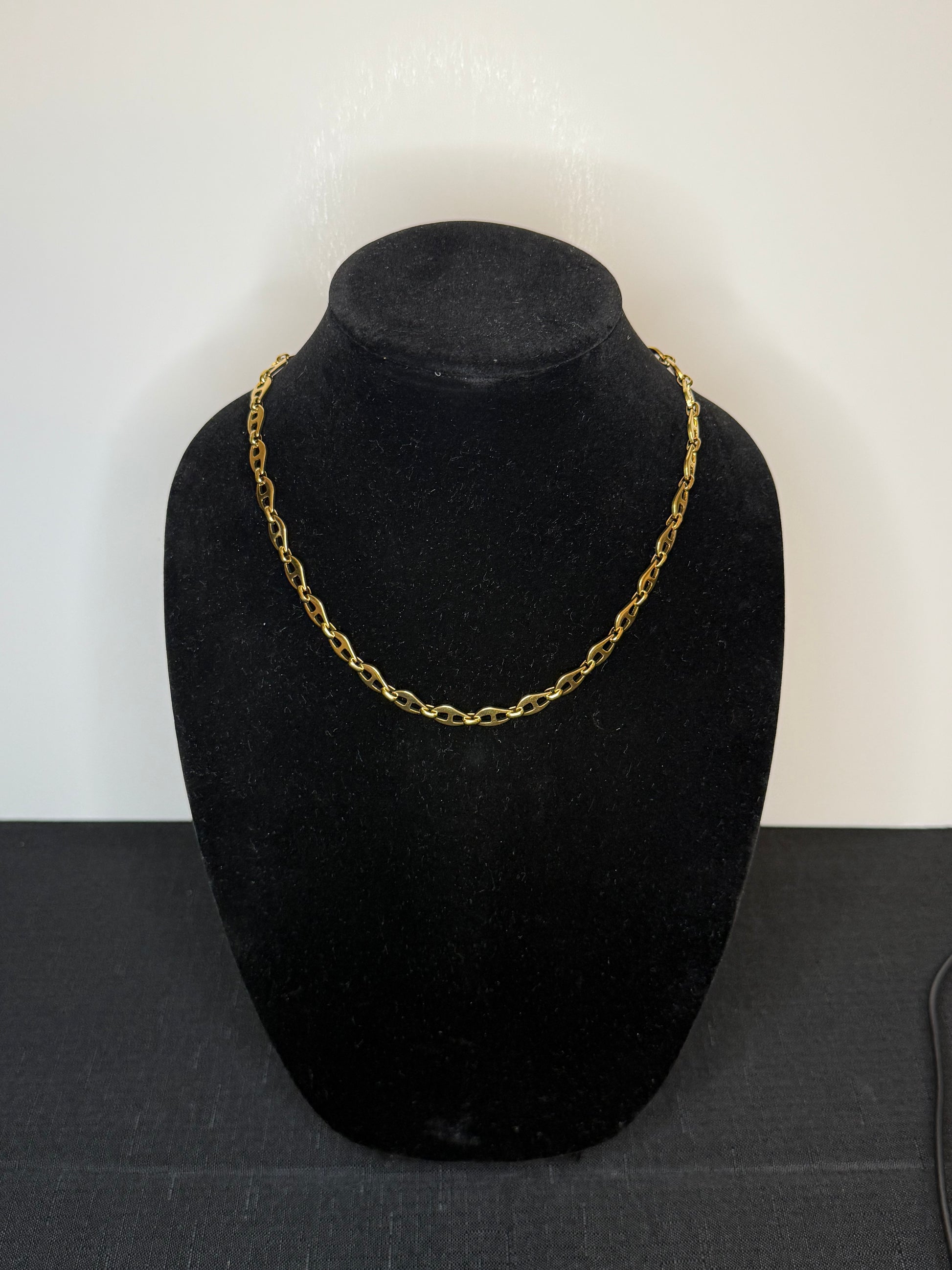 Constructed from stainless steel and coated with 18k gold or sterling silver, this 19" chain embodies refined versatility. It can be elegantly worn as a lariat, a single strand, a sleek choker, or transformed into a bracelet, making it the perfect accessory to enhance any polished outfit.